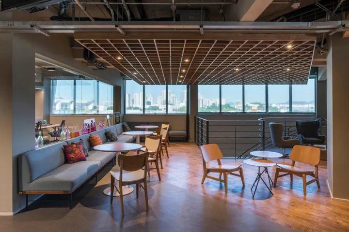 深圳装饰公司设计结合当下前沿的设计理念,打造一个灵动多元的办公空间。在开放工作区穿插了众多形式各异的协作空间,让交流与分享随时随地。车厢座、看台式阶梯座、入墙沙发座等设计元素为空间增添了丰富的趣味性和青春色彩。