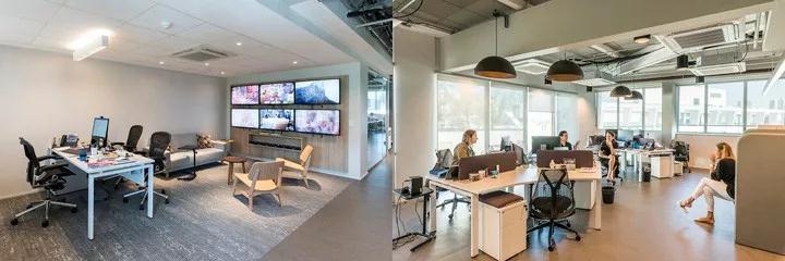 新办公室装修设计空间的主旨之一就是为这些团队打造一个全面开放的工作空间,促进交流、分享、与紧密连接;深圳写字楼装修同时又保持各频道团队的区域特色。充足的采光、开敞壮观的城市景观视野也是本案的一大特色。