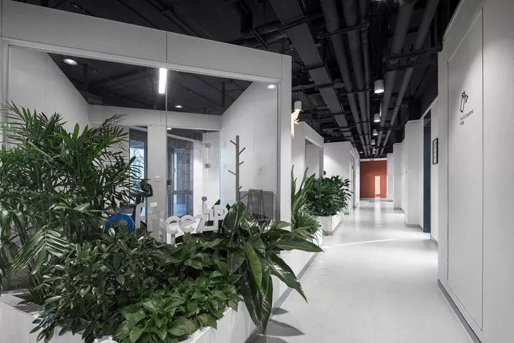 在呈现绿色生态之外,设计想要现代科技随处可感触可体验,所以在整个办公区域内,融入了人脸通行、数字化管理、办公会议共享预定以及会议无线投屏等功能,再加上手机摇一摇的开门技术,让人和空间时刻都能进行智能互动。