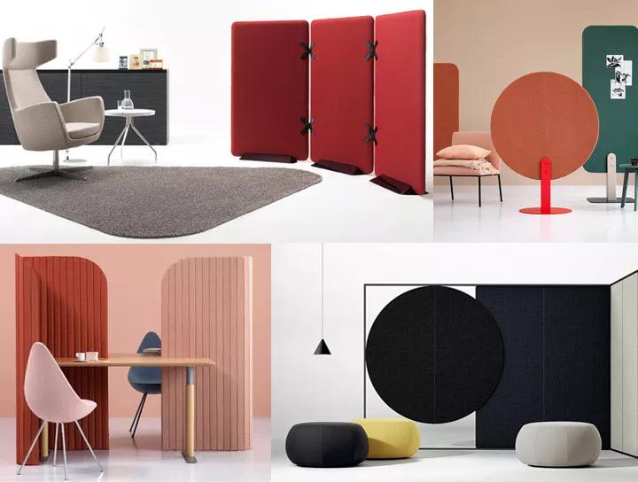 立式声学隔屏当你需要在一个灵动的办公环境里自由变换功能配置时,轻如羽毛般的设计让移动和变化变得轻松自如,一切尽在掌控。立式声学隔屏,极简而时尚的隔屏,以简洁的几何形式——圆形和方形,为当代公共空间创建了一个实用又时尚的视觉装饰元素。模块化的独立系统,深圳装饰公司为开放工作空间或协作环境中静静的思考或安静的交谈创建一片自由空间,同时丰富的色彩也助力空间情感的表达。