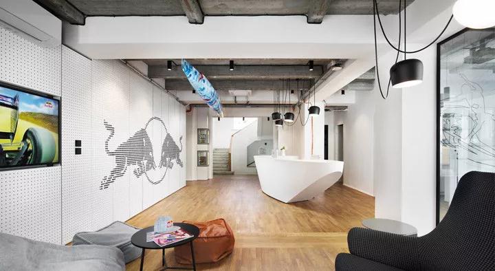 办公室原是一个朴素的极简功能主义住宅综合体建筑,为了获得更多的使用空间,装饰公司设计团队将其拆除至原始混凝土和砖块构造,也因此自然形成工业风的室内状态。优质的建筑构造,其原始表面和现代设计融为一体。空间的使用者主要是一群千禧代的年轻人。因此装修公司设计团队打造了一个休闲的工作氛围,在这里你可以和朋友一起分享美味的咖啡、也可以来上一罐能量满满的红牛。这是一个让拥有共同生活理念和激情的人群汇聚在一起的大型社区,因为志同道合而心灵共振。
