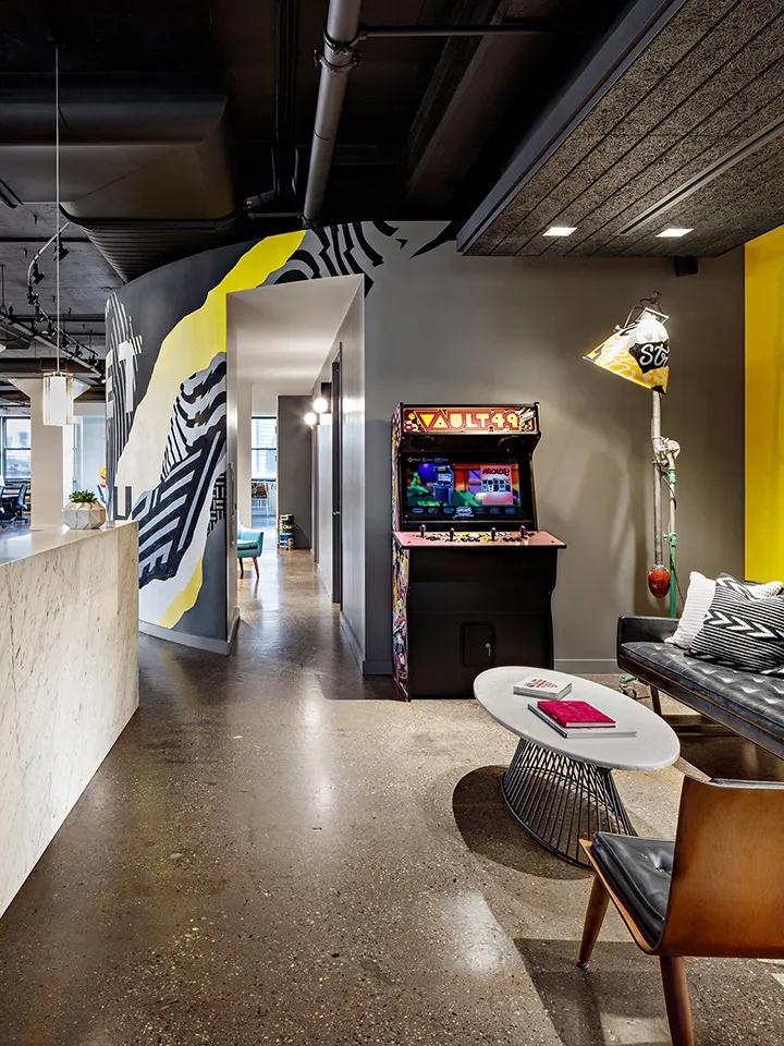 品牌创意设计机构Vault49,公司起源于伦敦传播学院的版画室里,创始人在那里不期而遇,暗中相互觊觎对方的作品,合作的野心由此蔓延,两个街头艺术家成就了到世界创意工作室的传奇故事。本案是其位于纽约的总部办公室,Capital C Interiors装修设计团队打造。
