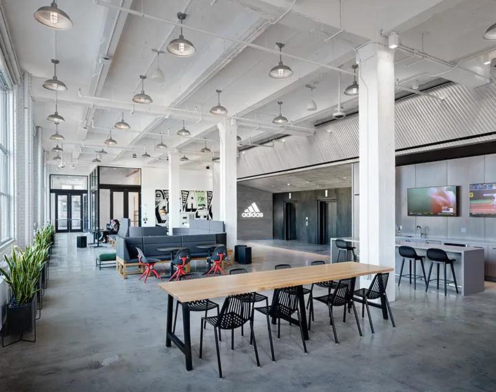 阿迪达斯(Adidas)是德国运动用品制造商。本案的办公室,由深圳装修公司设计团队打造。本案将一座的两层楼老厂房爆改成一个集办公、发布会场和展示于一体的时尚空间。建筑将这个知名品牌的所有部门第一次聚集在同一个屋檐下,省去了租用和配备临时活动场地的必要性,从而节省了大量资源。除室内建筑外,该项目还包括所有家具选择,以及一个大型顾问团队(包括视听、安全、信息技术和品牌策划)的合作协调。