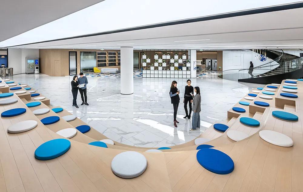 整体空间设计以井为标准,兼顾空气、水、热舒适、采光、心理健康等因素,使用更多天然材料,营造有利于健康高效工作的环境。多功能“明天广场”配备楼梯空间和咖啡厅,让员工在半正式的氛围中交流、参加会议、工作 正门附近的社交网络和螺旋楼梯增强了上下的可达性地板。一楼有大理石台阶和精心规划的绿色植物,营造出活泼的氛围。悬挂式螺旋水晶吊灯与螺旋梯相得益彰,象征着不断崛起、不断创新的企业文化。以城市规划理念为基础,结合穆在建筑、空间战略规划、室内设计、工程设计等专业领域的经验,室内空间设计打造以员工为中心、促进沟通、与品牌形象相匹配的办公室全球企业和人工智能领导者,我们强烈支持明略创造“人机合作更美好世界”的愿景。