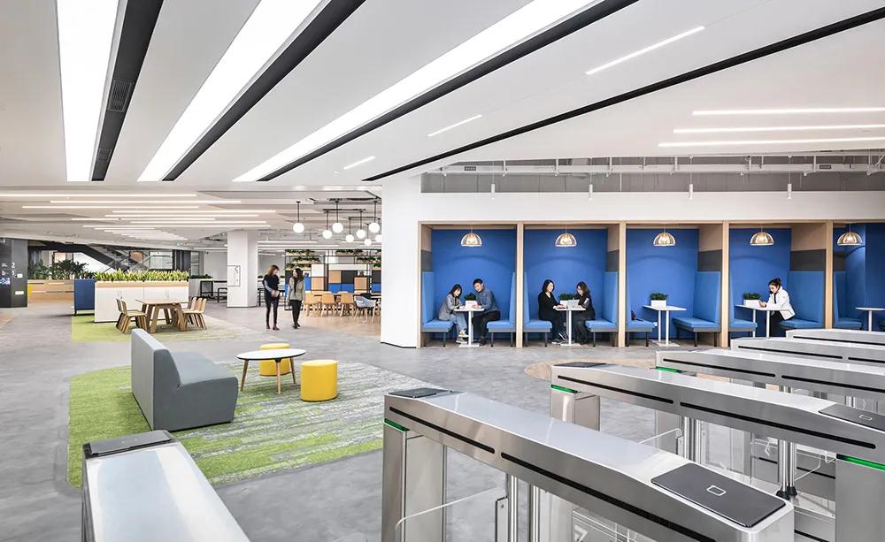 深圳装饰公司在研究空间战略规划的基础上,规划了一系列办公场景,以支持不同的工作内容。这些丰富的场景包括入口处的多人谈判亭,方便即兴和临时交谈;各种规格的会议室、培训室;合作区、茶歇区、电话亭等。